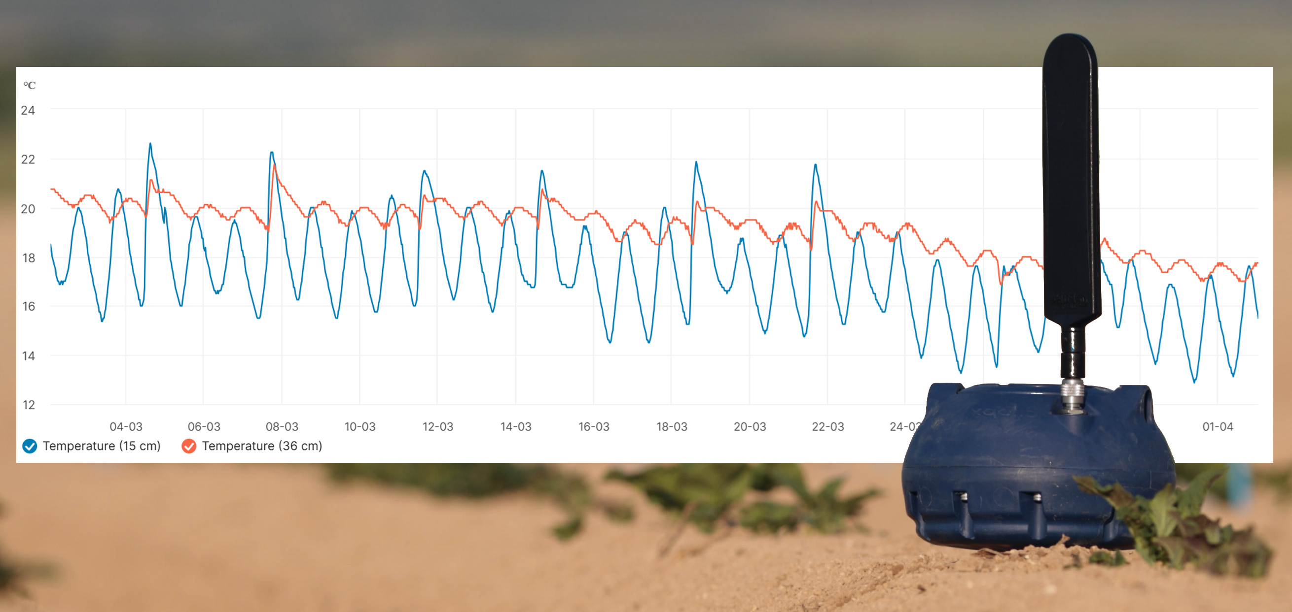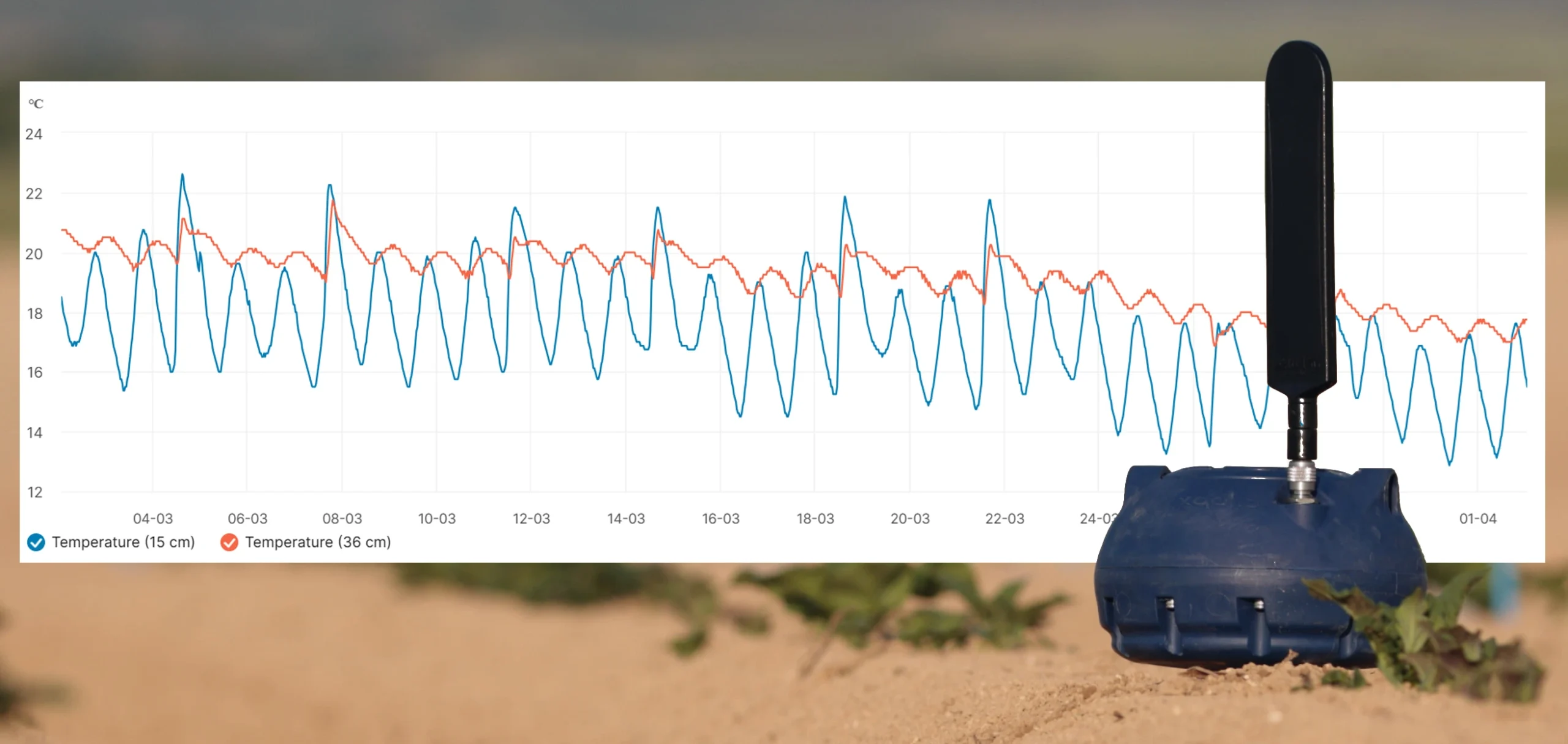 CropX combina sensores de suelo con algoritmos de inteligencia artificial y machine learning, midiendo humedad, temperatura y conductividad eléctrica (EC) en tres profundidades.